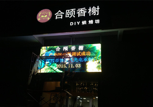 由深圳市領路人光電科技承接的惠州合頤香榭DIY烘焙坊戶外P6全彩顯示屏在近日已成功安裝調試。具有節能型設計、視角廣、配光好、清晰度高、散熱性好等特點的戶外P6全彩顯示屏在近年來備受歡迎,廣泛應用于不同場所之中。